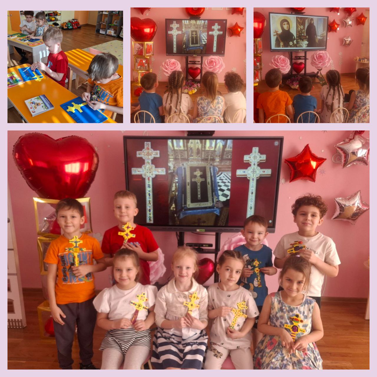 Сення дзеці старэйшай групы №6 пазнаёміліся з Еўфрасінняй Полацкай — першай беларускай асветніцай. Дзеці даведаліся, як князёўна Прадслава любіла кнігі і вучыла дзетак дабрыні. Успомнілі і пра славуты Крыж Еўфрасінні Полацкай. А потым самі ператварыліся ў чараўнікоў-майстроў і з вялікім захапленнем упрыгожвалі бліскучымі каменьчыкамі свае ўласныя крыжыкі для Еўфрасінні. Вось так праз творчасць дзеці дакрануліся да гісторыі.