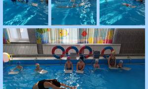 Сегодня воспитанники старшей группы № 9 на занятии по физической культуре (плавание) обучались скольжению на груди с опорой о плавательную доску в сочетании с работай ног.