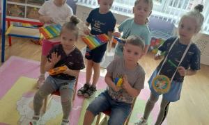 Выхаванцы сярэдняй групы № 4 познаёмiлiся з беларускiмi  музычнымi iнструментамi, паслухалi песнi на беларускай мове. У канцы занятка хлопчыкi i дзяу́чынкi сыгралi на музычных инструментах.