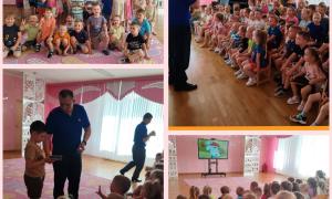 24 июля для воспитанников учреждения дошкольного образования Булыка Юрий Михайлович, заместитель начальника Слонимского РОЧС, подготовил увлекательную беседу "Правила безопасности", в ходе которой закрепили знания детей о пожарной безопасности и правилах поведения на воде. Также для ребят был показан познавательный видеоролик "Азбука безопасности"
