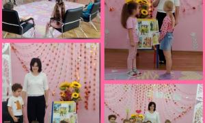 Воспитанники группы  № 9  готовились поздравить своих мама с праздником . Ребята создали целую картинную галерею цветов, которых так не хватает осенью.