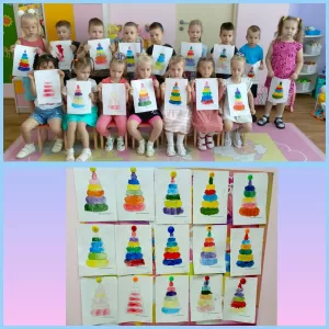 Образовательная область "Изобразительное искусство. Рисование" на тему: "Разноцветная пирамида" в средней группе № 4.