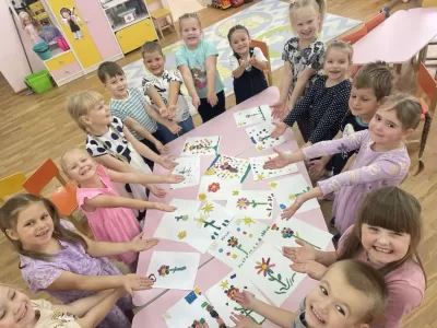 Воспитанники группы № 9 готовились поздравить своих мама с праздником . Ребята создали целую картинную галерею цветов, которых так не хватает осенью.