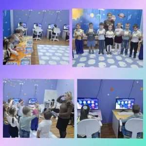 В рамках реализации годовой задачи "Формирование математической грамотности детей посредством использования игровых методов и приемов" в старшей группе № 9 был проведён открытый просмотр занятия по образовательной области "Элементарные математические представления" с использованием ИКТ. Ребята отправились в путешествие по космическим простором, чтобы помочь инопланетянам раскрыть неизведанные математические планеты. Выполняя различные математические задачи, ребята закрепили количественный счёт, пространственные представления , части суток, развивали логическое мышление. В конце занятия каждый получил грамоту как первооткрыватель неизведанных планет.