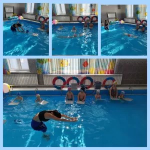 Сегодня воспитанники старшей группы № 9 на занятии по физической культуре (плавание) обучались скольжению на груди с опорой о плавательную доску в сочетании с работай ног.