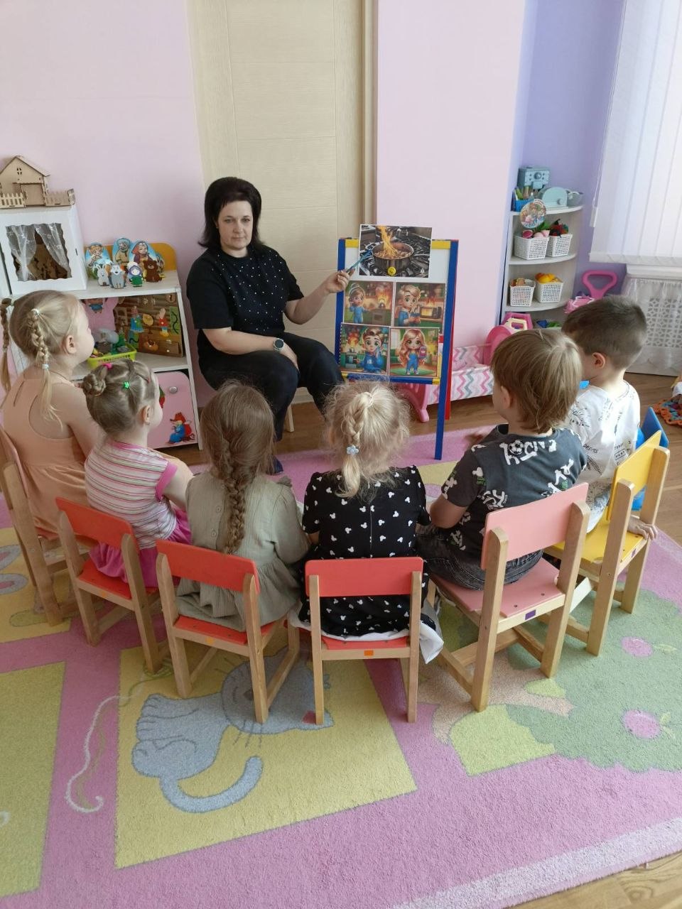 Сегодня с воспитанниками средней группы № 4 проведена беседа «Кухня — зона повышенного риска: как не превратить обед в трагедию», направленная на обучение детей основам безопасного поведения на кухне: запрет на игры с огнем, электроприборами (чайник, плита) и острыми предметами (ножи, вилки). Основная цель — научить замечать опасность, правильно обращаться с техникой и знать, что делать (сообщать взрослым) при аварийной ситуации.