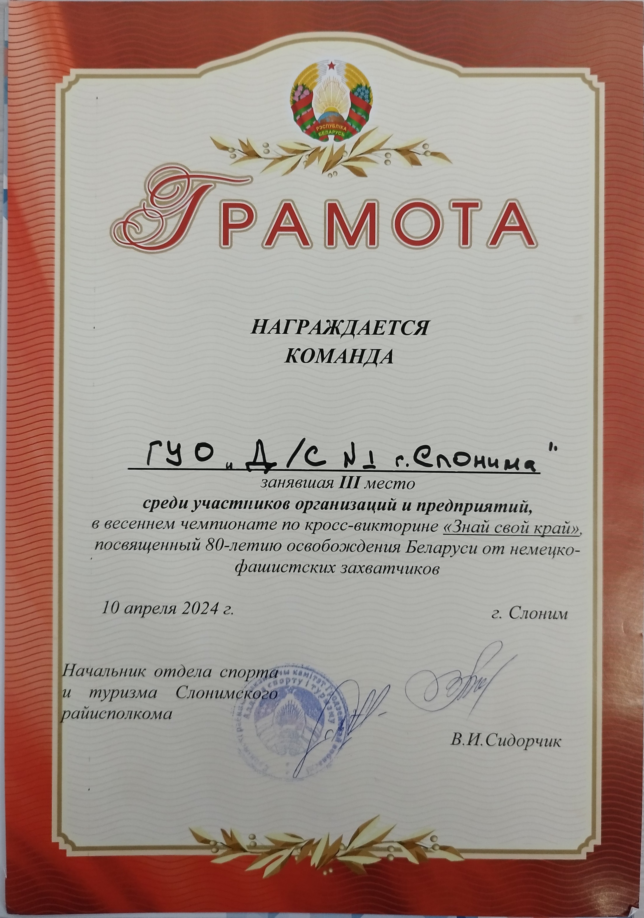 Государственное учреждение образования "Детский сад № 1 г.Слонима"